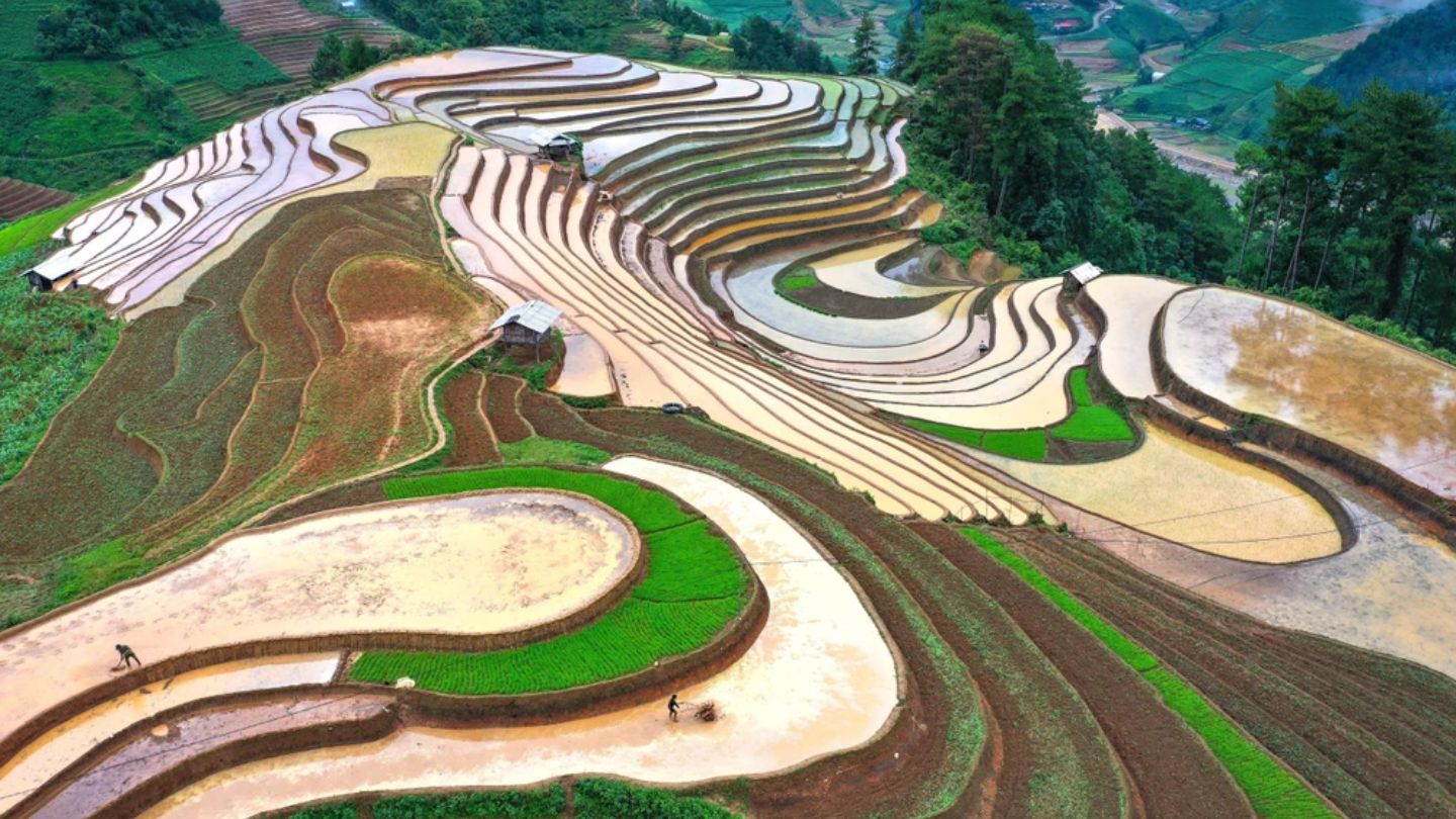 March is the ideal month for visiting Sapa’s rice fields. It marks the start of the water-pouring season when farmers flood the terraced fields to plant seeds. The fields burst into vibrant colors, while mist-covered mountains create a serene backdrop. Visitors can immerse themselves in this picturesque setting filled with the aroma of newly planted seeds, enhancing the beauty of Sapa’s rice fields.